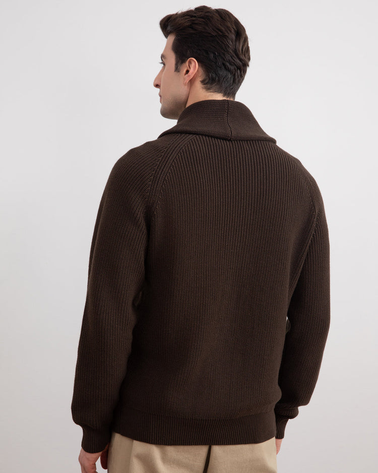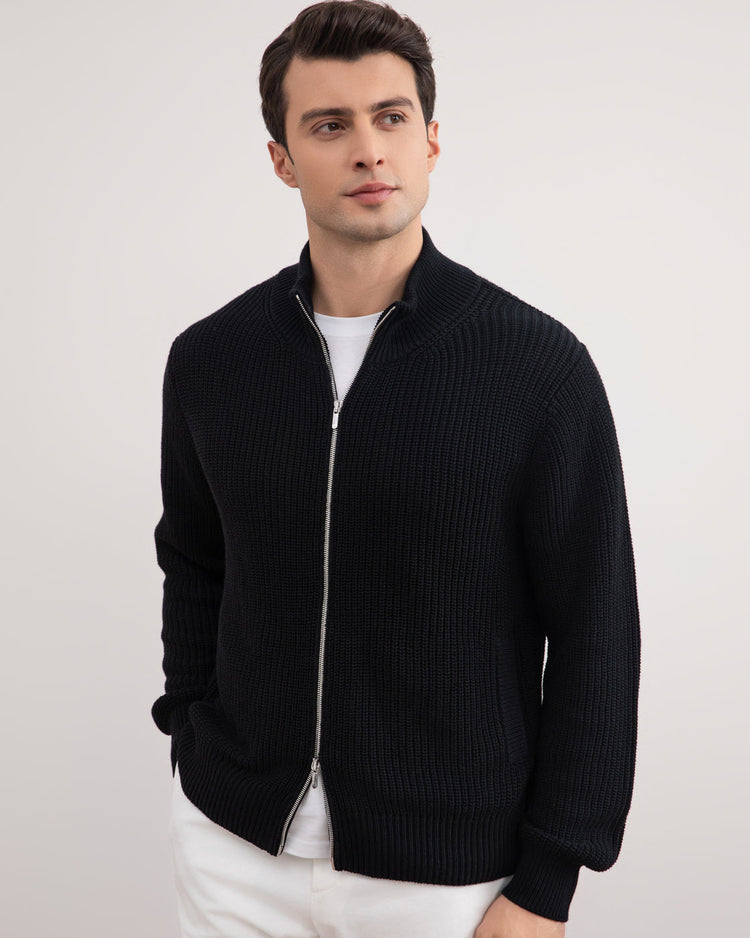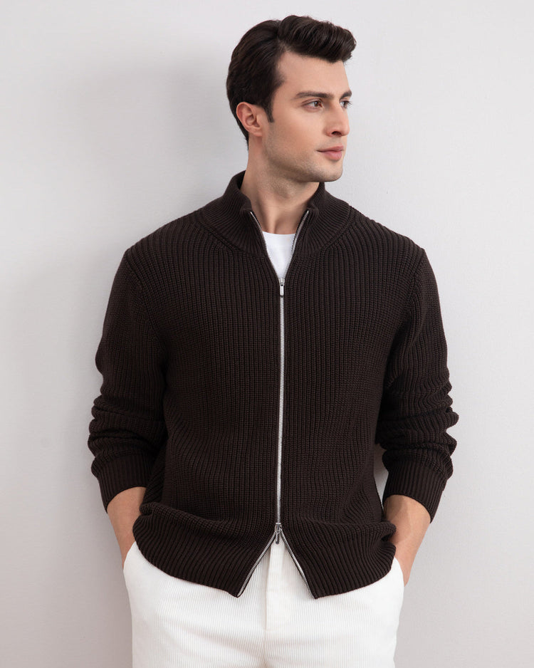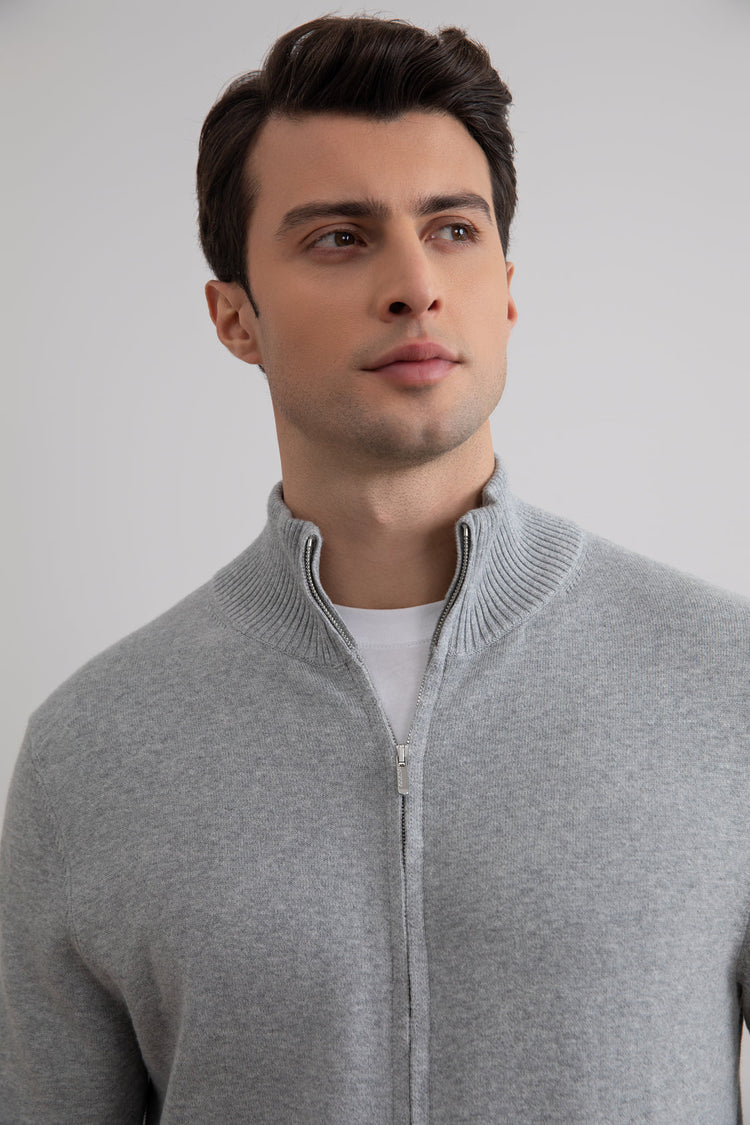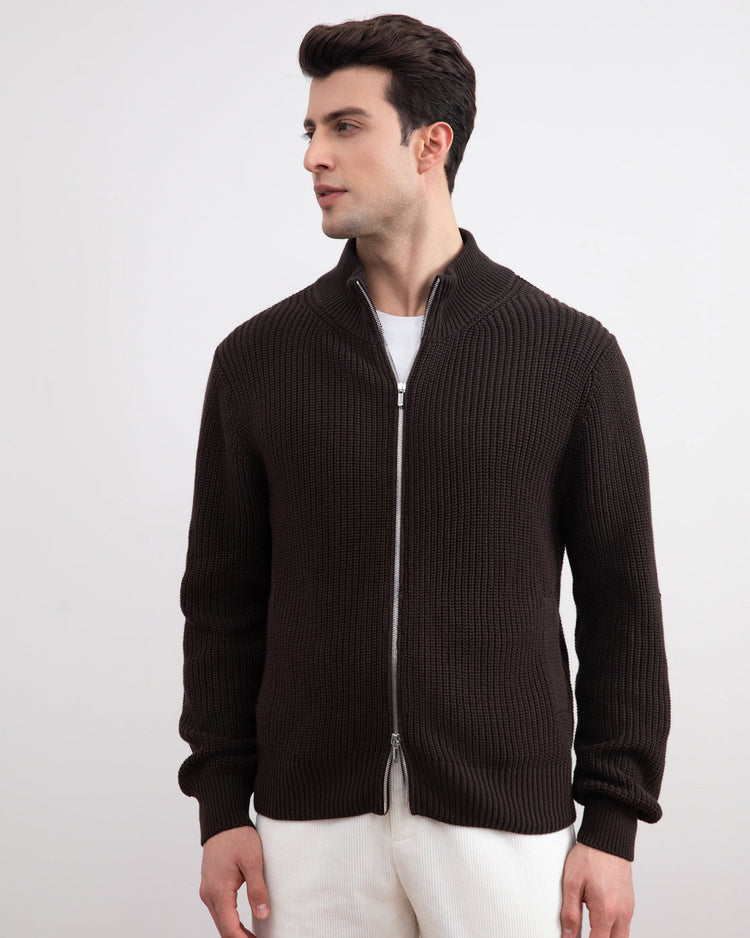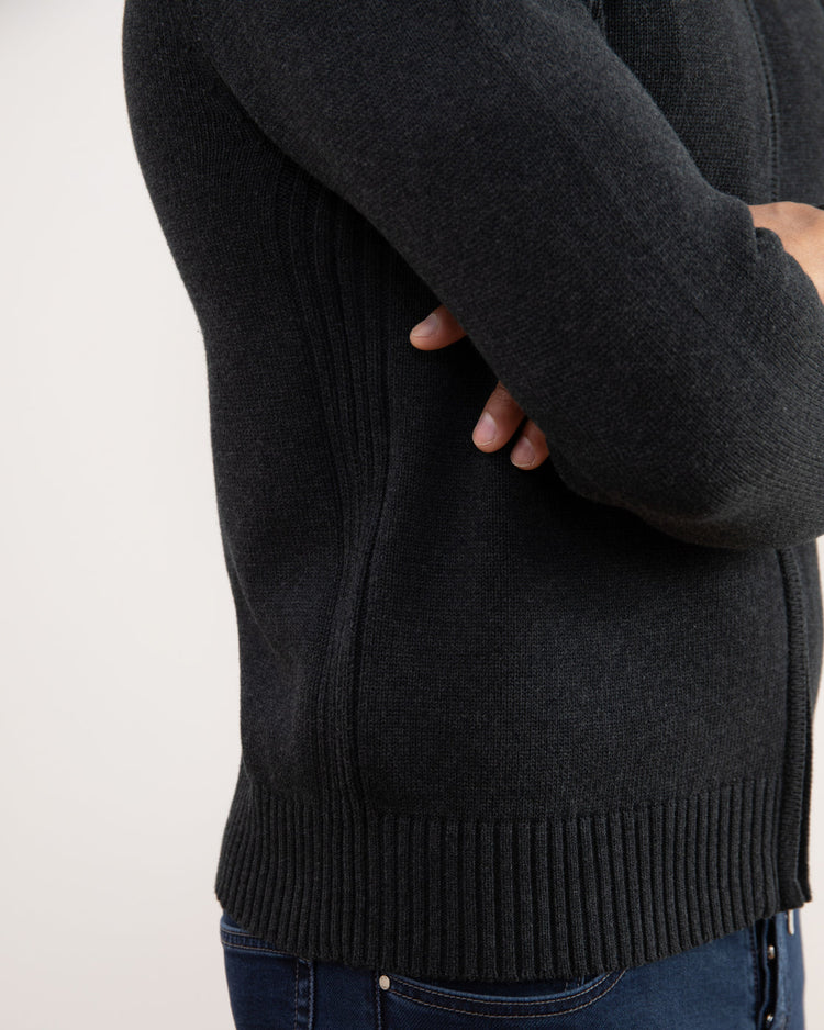 Dark Grey Mélange English Rib Full Zip Cardigan