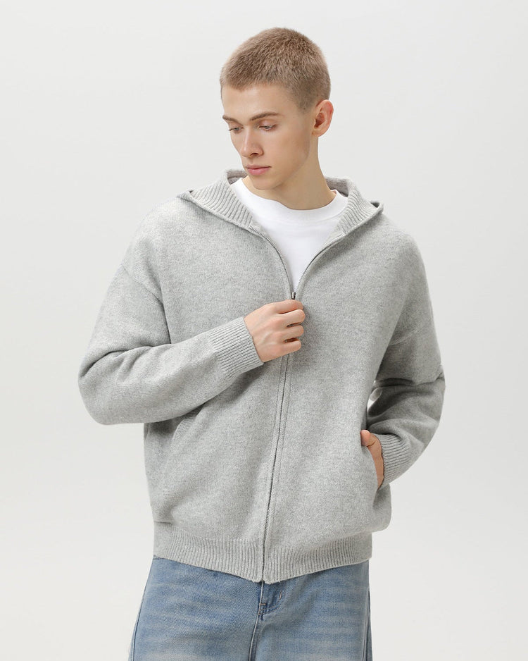 Minimalist Zip-Up Wool Blend Hoodie Cardigan
