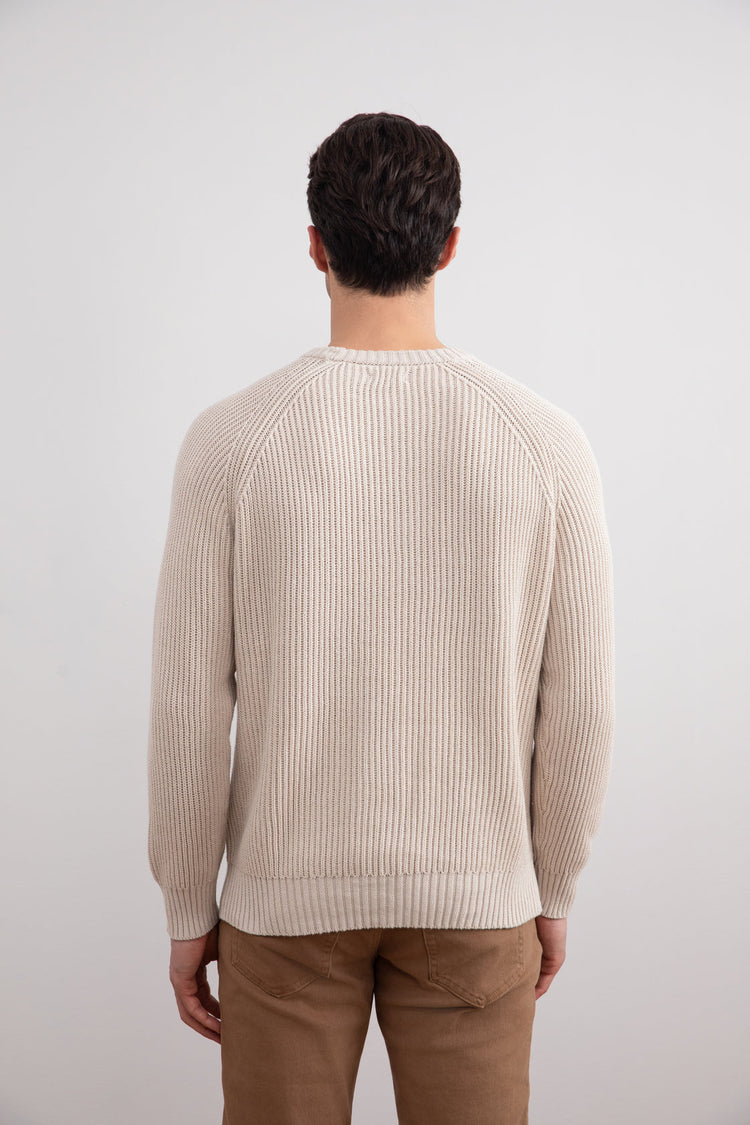 Beige Crewneck Malfilé English Rib Sweater