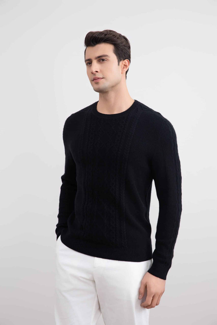 Black Cashmere Cable Knit Crewneck