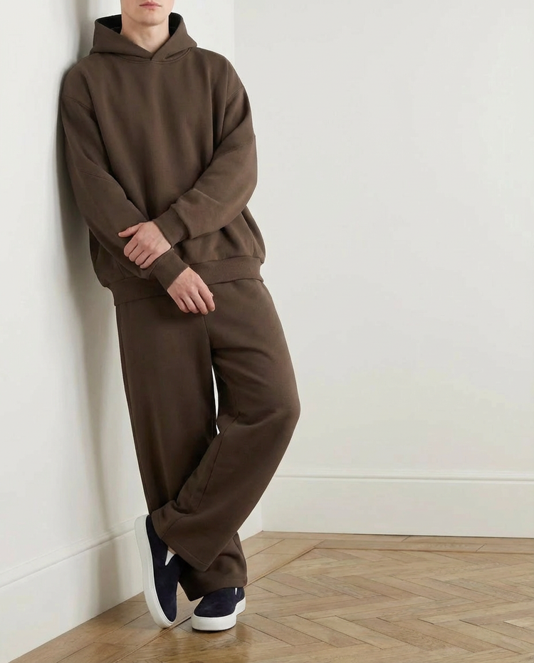 2-piece Wide Loose Fit Hoodie and Joggers Set - Brown