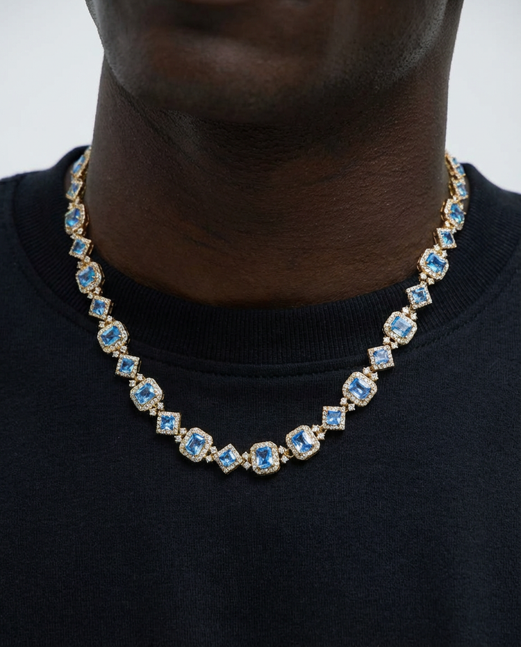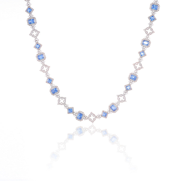 Blue Ice Halo Tennis Necklace