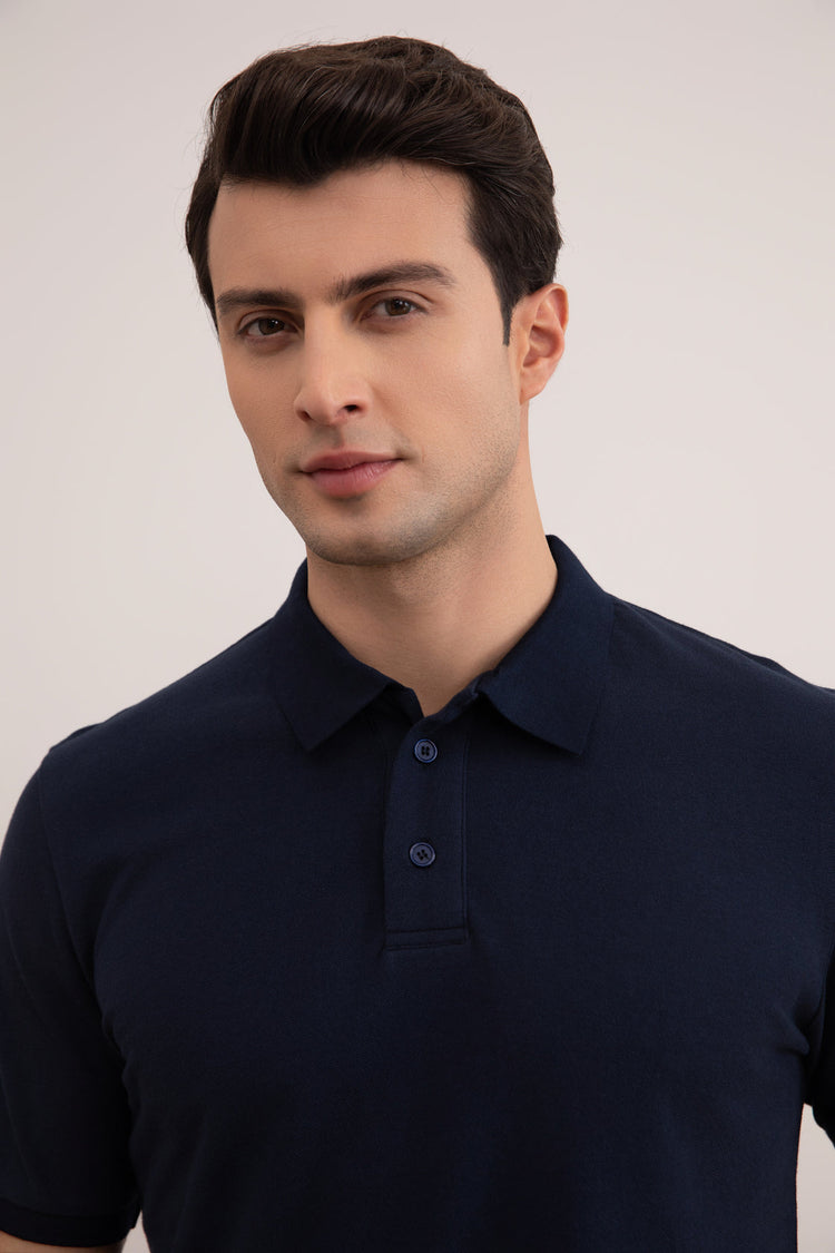 Navy Cotton-Piqué Polo Shirt