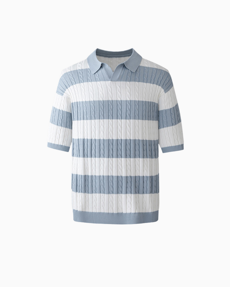 Cable‑Knit Striped Polo