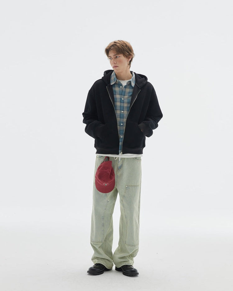 "Get Real" Checked Lined Zip Hoodie Sweater