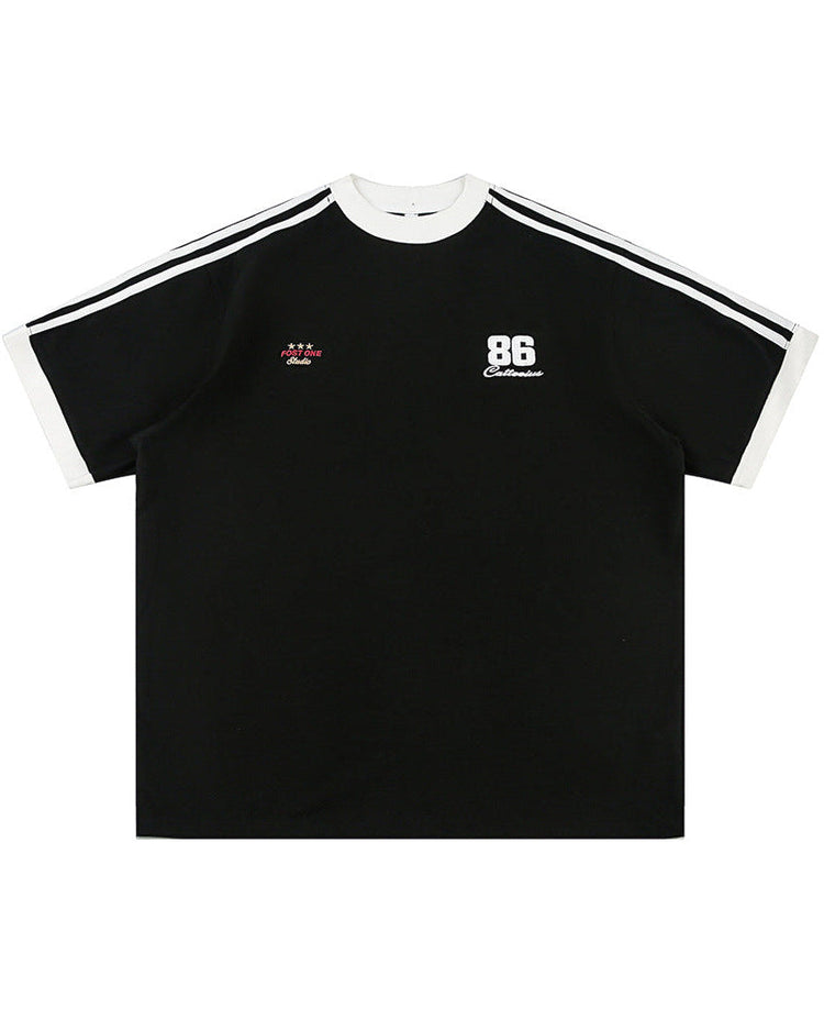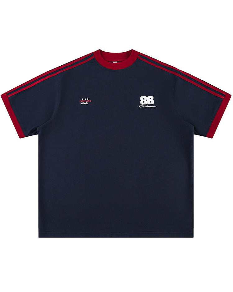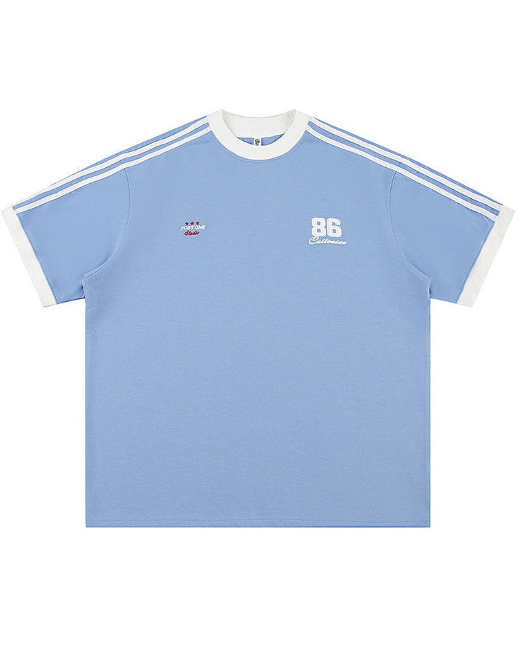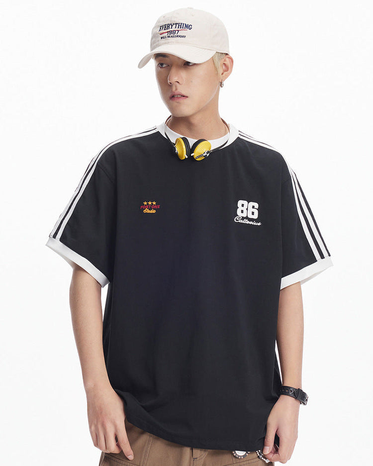 The Embroidered Contrast Striped Short-sleeved T-shirt